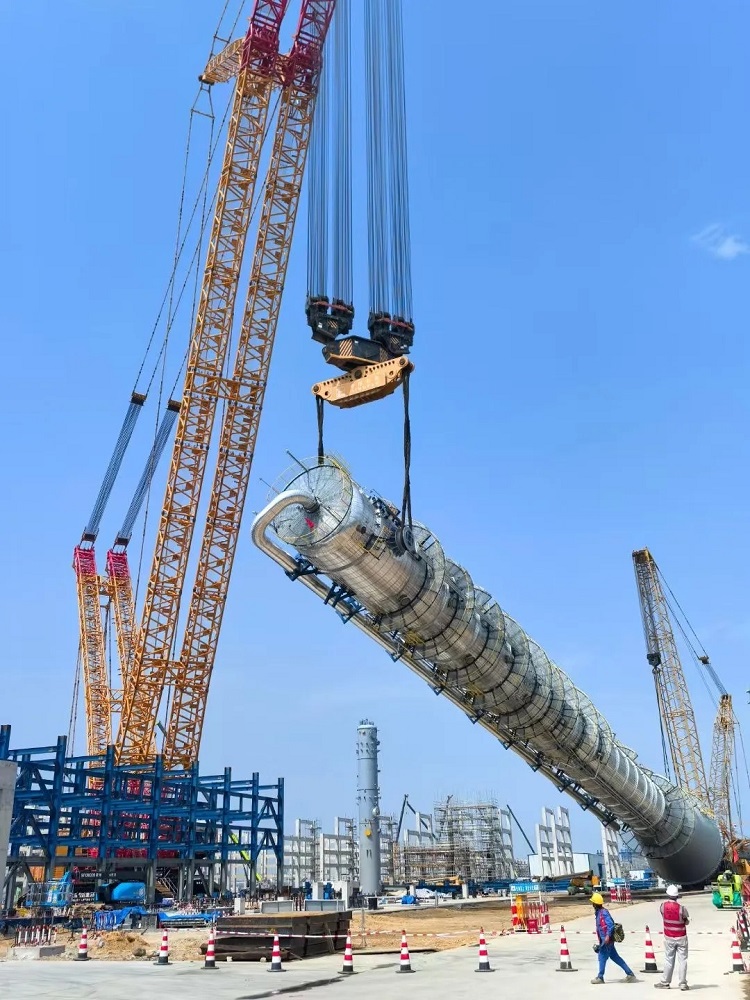 众能联合作为国内领先的一站式工程机械江南网页版入口_江南(中国)服务提供商,接到战略客户中化三建在中沙古雷乙烯项目大吨位履带式起重设备的吊装服务需求后,快速响应组织设备资源,同时协助项目起草安拆方案和报审,并安排专业履约团队进驻项目现场进行设备的组装调试,专业、高效、安全地保障中化三建圆满完成3040区域0401、0403两台大塔装置的精准落位!场景化安全江南网页版入口_江南(中国) 树立行业安全新标杆